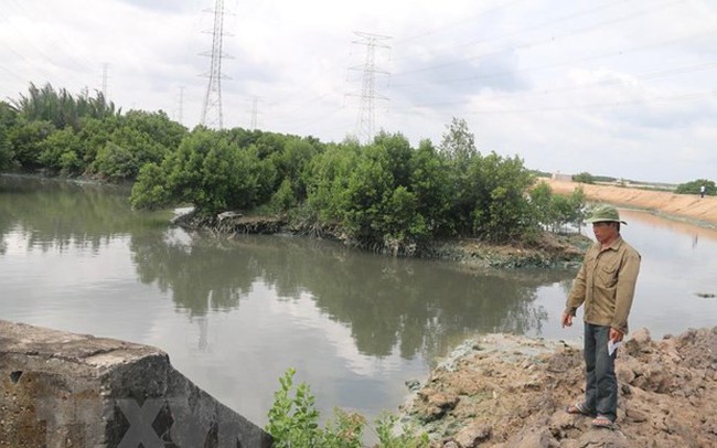 Khu vực nhánh sông Vàm Hưng Mỹ, khu phố Phú Hà, phường Mỹ Xuân bị ô nhiễm trầm trọng do doanh nghiệp xả thải trực tiếp. (Ảnh: Hoàng Nhị/TTXVN)